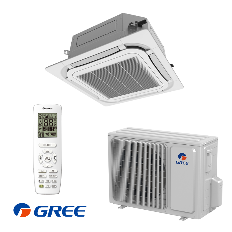 GREE’s ceiling cassette units provide 360° cooling coverage, ideal for commercial spaces with suspended ceilings. Slim design blends seamlessly into modern interiors.